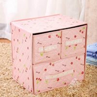 กล่องผ้าใส่ของ (2 ชั้น 3 ช่อง) ลายเชอรี่ สีโอรส