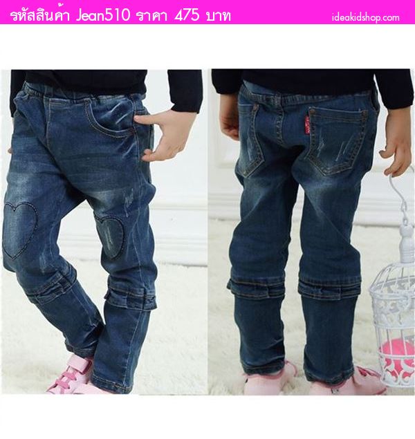 หมด กางเกงยีนส์เอวยางยืดขายาว ช่วงเข่าด้านหน้าปักเป็นรูปหัวใจดวงโตซ้ายขวา