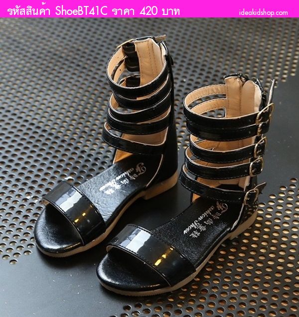 หมด รองเท้าเด็กแฟชั่นแบบสวม ด้านหลังมีซิปรูด สไตล์โบฮีเมียนทรงสาน