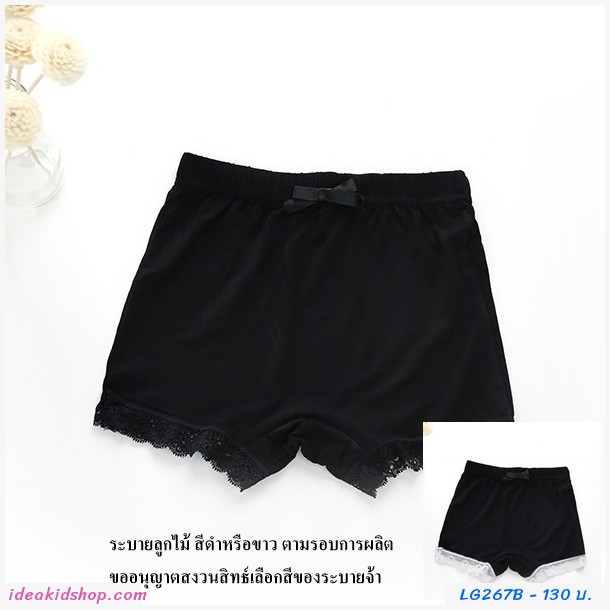 หมด เลกกิ้งเด็กเอวยางยืดขาสั้น ปลายขาแต่งลายลูกไม้สวยๆ ช่วงเอวด้านหน้าเย็บโบว์ติดเก๋ๆ