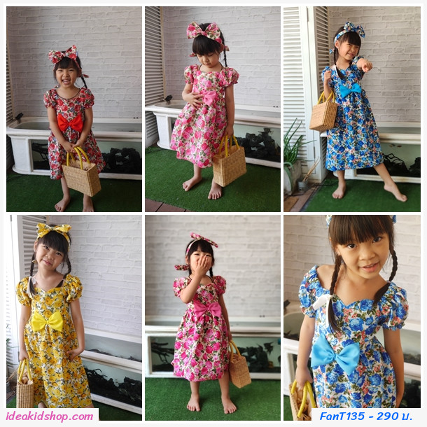 หมด เดรสเด็กคอเหลี่ยมแขนตุ๊กตา ลายดอกไม้สวยๆ ช่วงแขนยางยืด