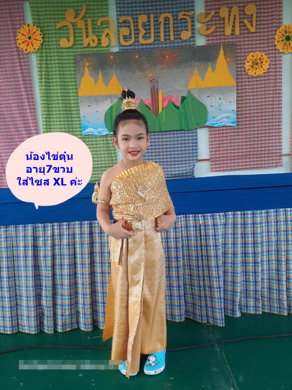 ชุดไทยนางนพมาศ สไบพีทและกากเพชร+ผ้าถุงหน้านาง สีทอง [ของใช้ในบ้าน ของแต่งบ้าน IdeaBoxBox]