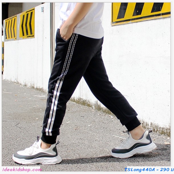 หมด กางเกงวอร์มเด็กเอวยางยืดขายาว ปลายขาจั๊ม แต่งแถบเล็กด้านข้างซ้ายขวา