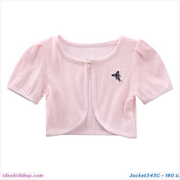 เสื้อคลุมเด็กครึ่งตัวแขนสั้น ด้านหน้าอกฝั่งซ้ายปักลายผีเสื้อ