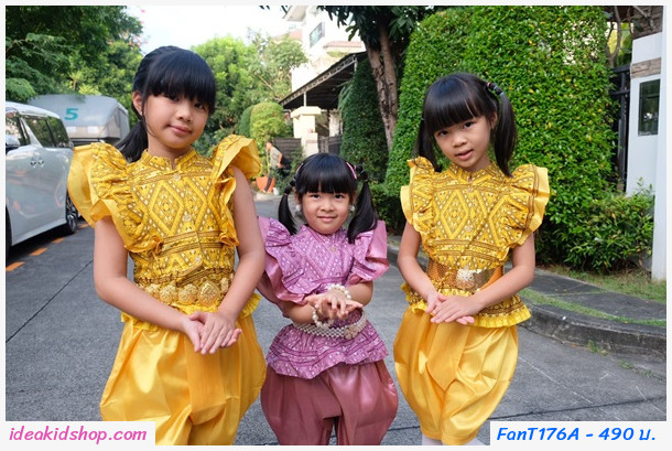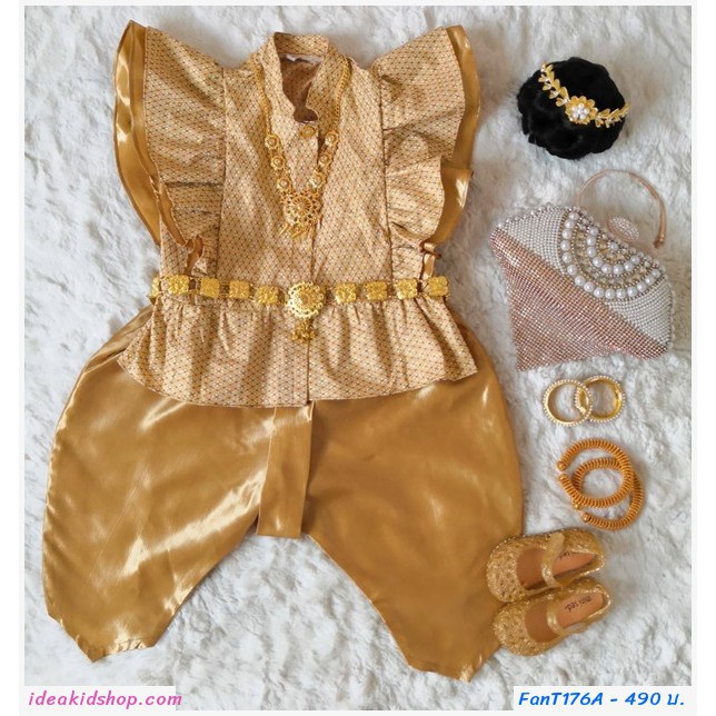 ชุดไทยเด็กหญิง นางหงส์ลายไทย สีทอง