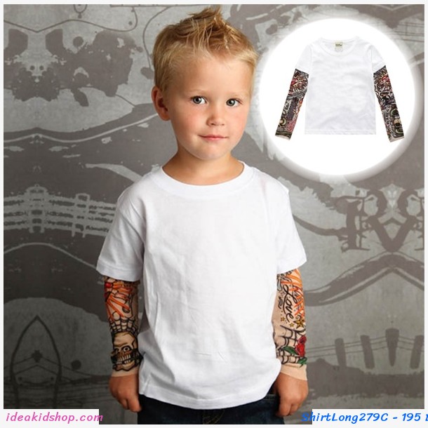 หมด เสื้อยืดคอกลมแขนยาว เนื้อผ้าคอตตอน ช่วงแขนสกรีนลายสัก เนื้อผ้าตาข่ายไนลอนยืดได้เยอะ