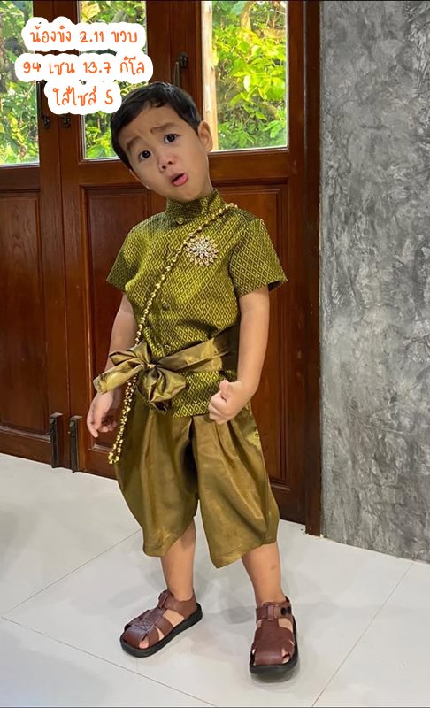 ชุดไทยเด็กชาย พี่หมื่น ผ้าทอยกดอก สีน้ำตาล