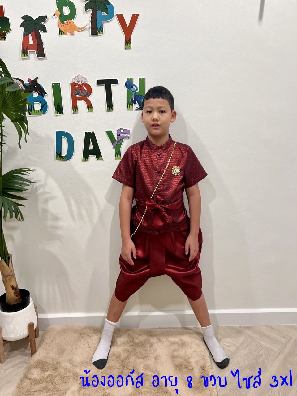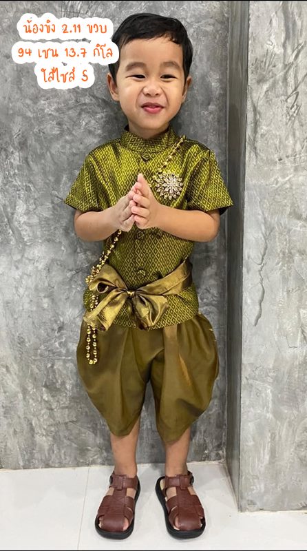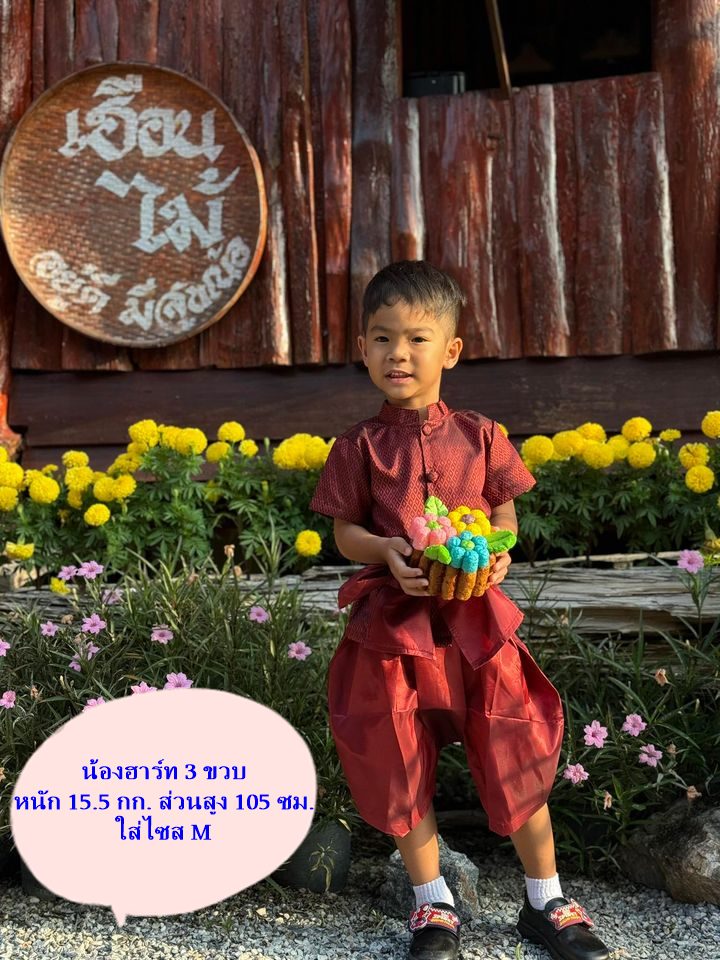ชุดไทยเด็กชาย พี่หมื่น ผ้าทอยกดอก สีน้ำตาล [ของใช้ในบ้าน ของแต่งบ้าน IdeaBoxBox]