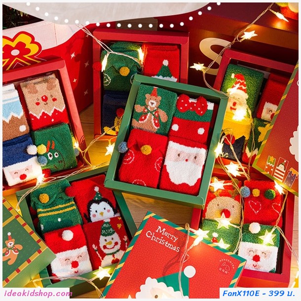 กิ๊บเซตถุงเท้ายาว Xmas Santa เซ็ต 4 คู่ เซต E