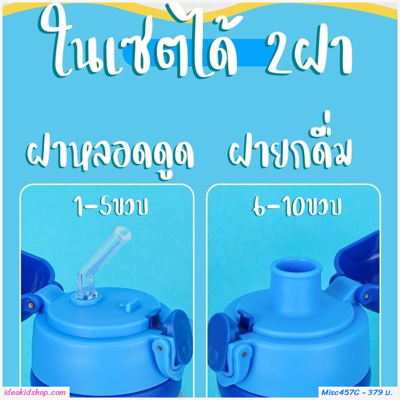ใช้งานได้ 2 ฝา ฝาแบบยกดื่ม และ ฝาหลอดดูด