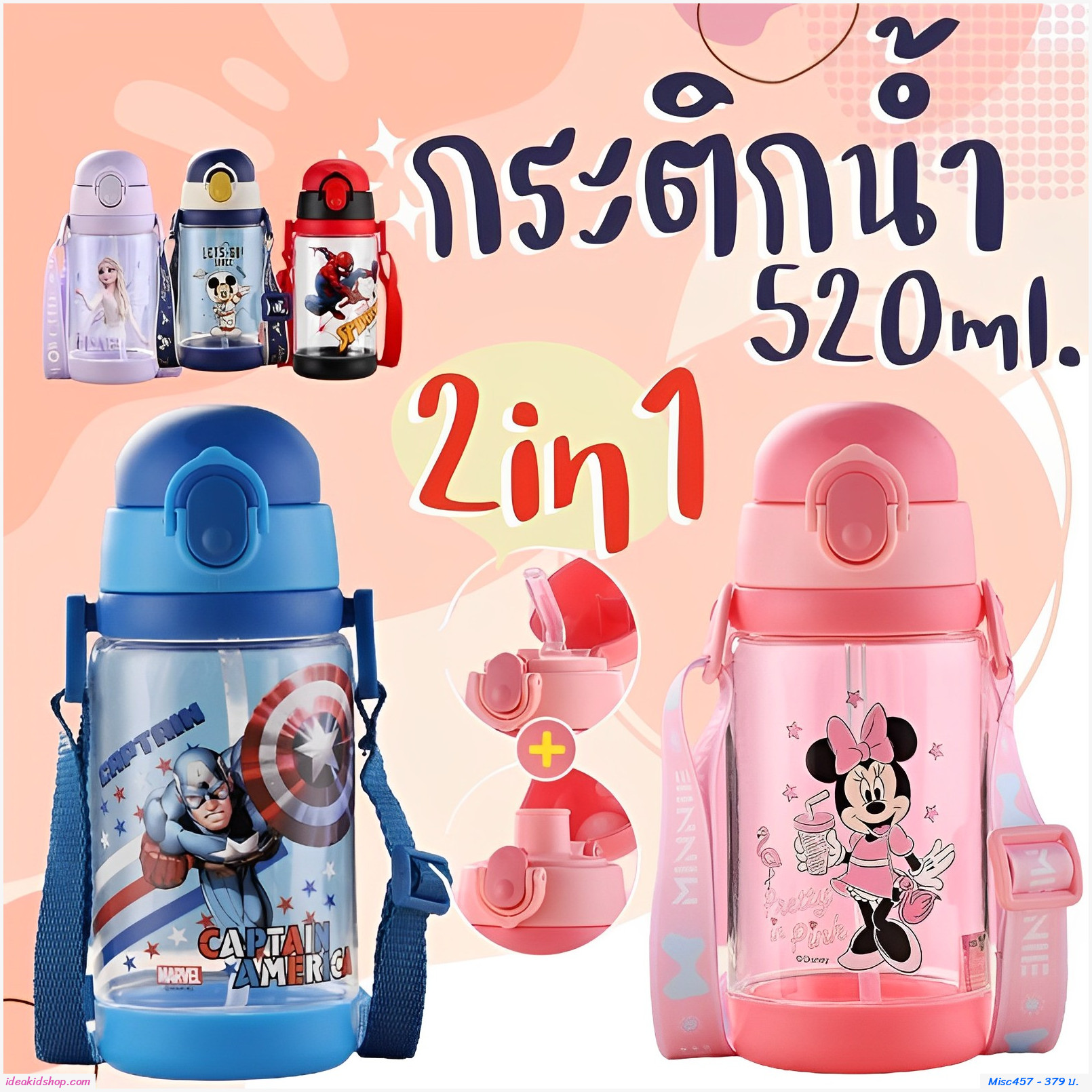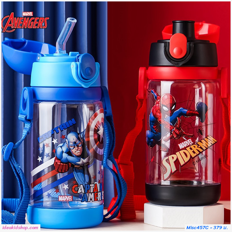 กระติกน้ำมีสายสะพาย แบบหลอดดูดและยกดื่ม 520 ml.Spiderman