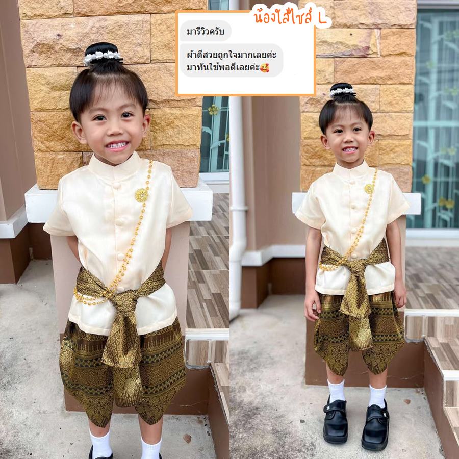 ชุดไทยเด็กชายแขนสั้นพร้อมผ้าพาด พี่หมื่น สีครีมแดง [ของใช้ในบ้าน ของแต่งบ้าน IdeaBoxBox]